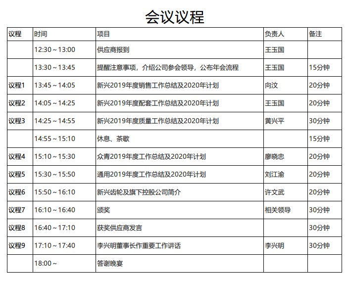 重慶新興齒輪有限公司供應(yīng)商大會(huì)議程